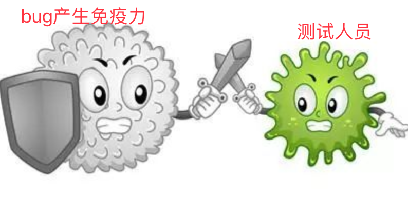 软件测试越多,对测试的免疫力也越强,例如开发和测试长时间相处,开发就知道测试人员的套路,也会尽量去避免。