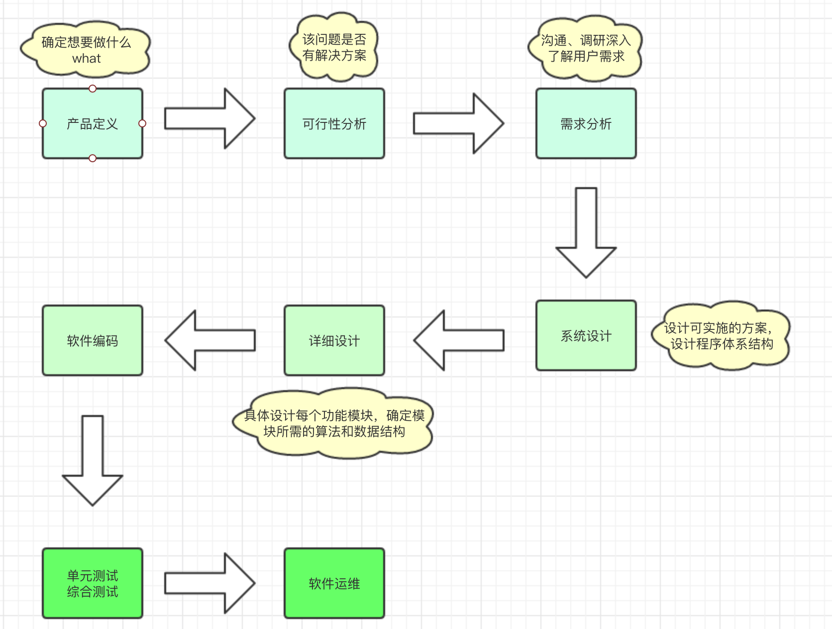 整个生命周期包括问题定义与规划、需求分析、系统设计、软件编程、软件测试、软件运维等阶段。