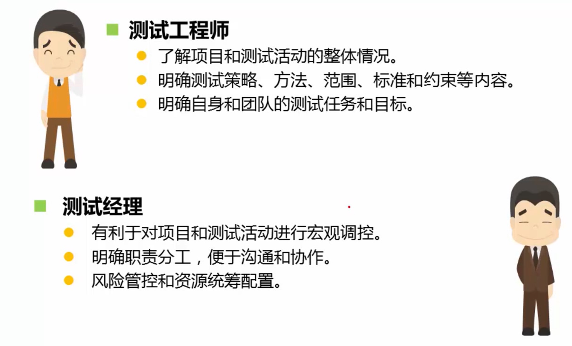 - 确定测试内容,测试由谁来执行,如何执行
