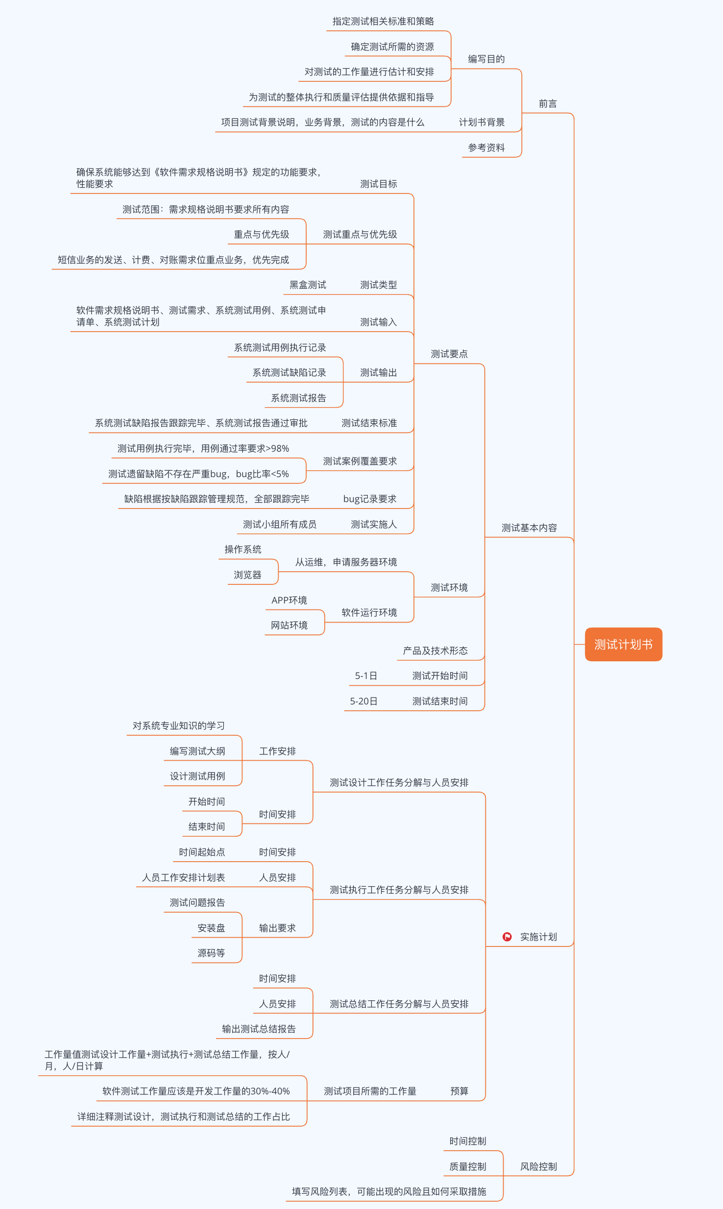 测试计划书内容包含: