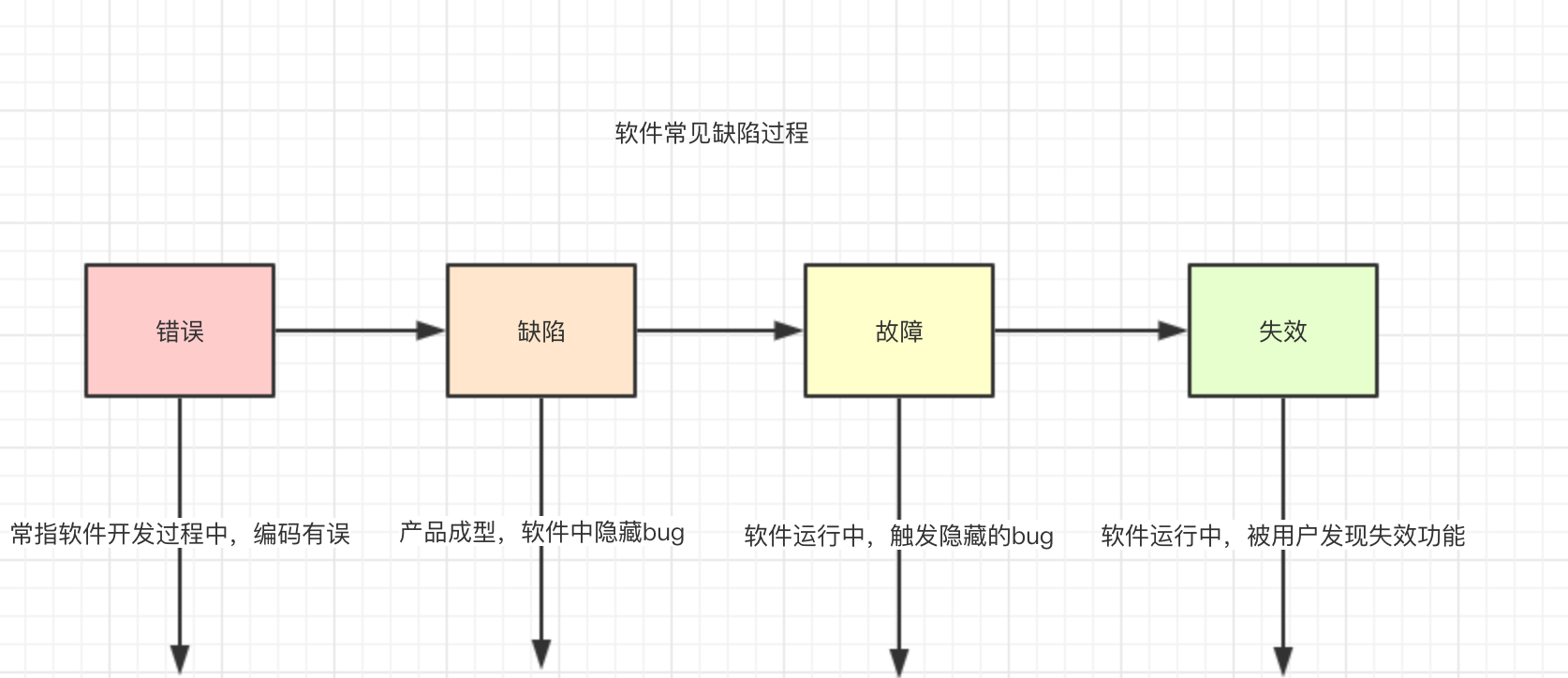 - 失效(Failure) 软件功能完全损坏,无法使用