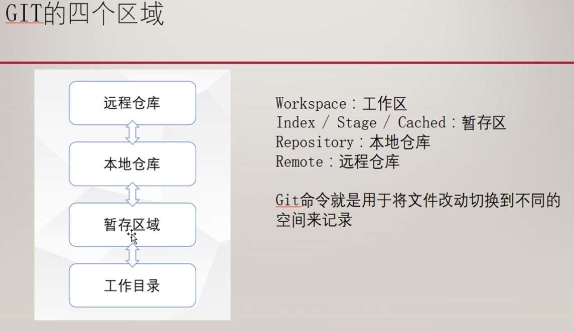 使用git就是将本地文件(工作目录workspace)的文件,添加到暂存区(stage),然后提交到本地仓库(repository),最终可以协同开发,推送到远程仓库(remote)