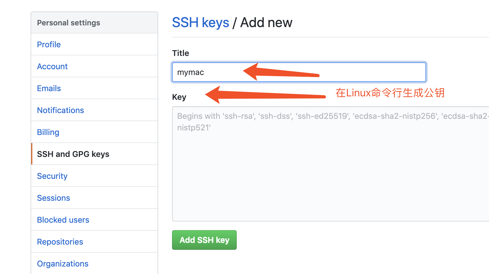 某台机器想要和github的仓库交互,需要提交这台机器的ssh公钥,添加到github账户