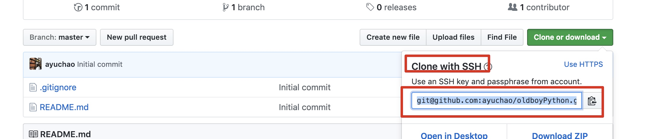 git clone git@github.com:ayuchao/oldboyPython.git #这一步下载远程git仓库到本地