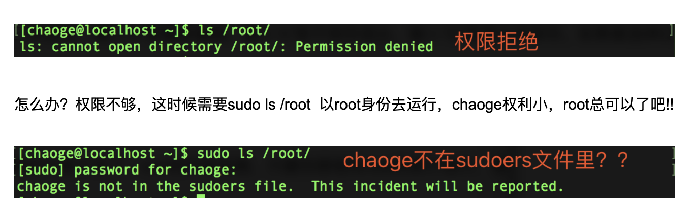 chaoge ALL=(ALL) ALL #允许chaoge在任何地方,执行任何命令
