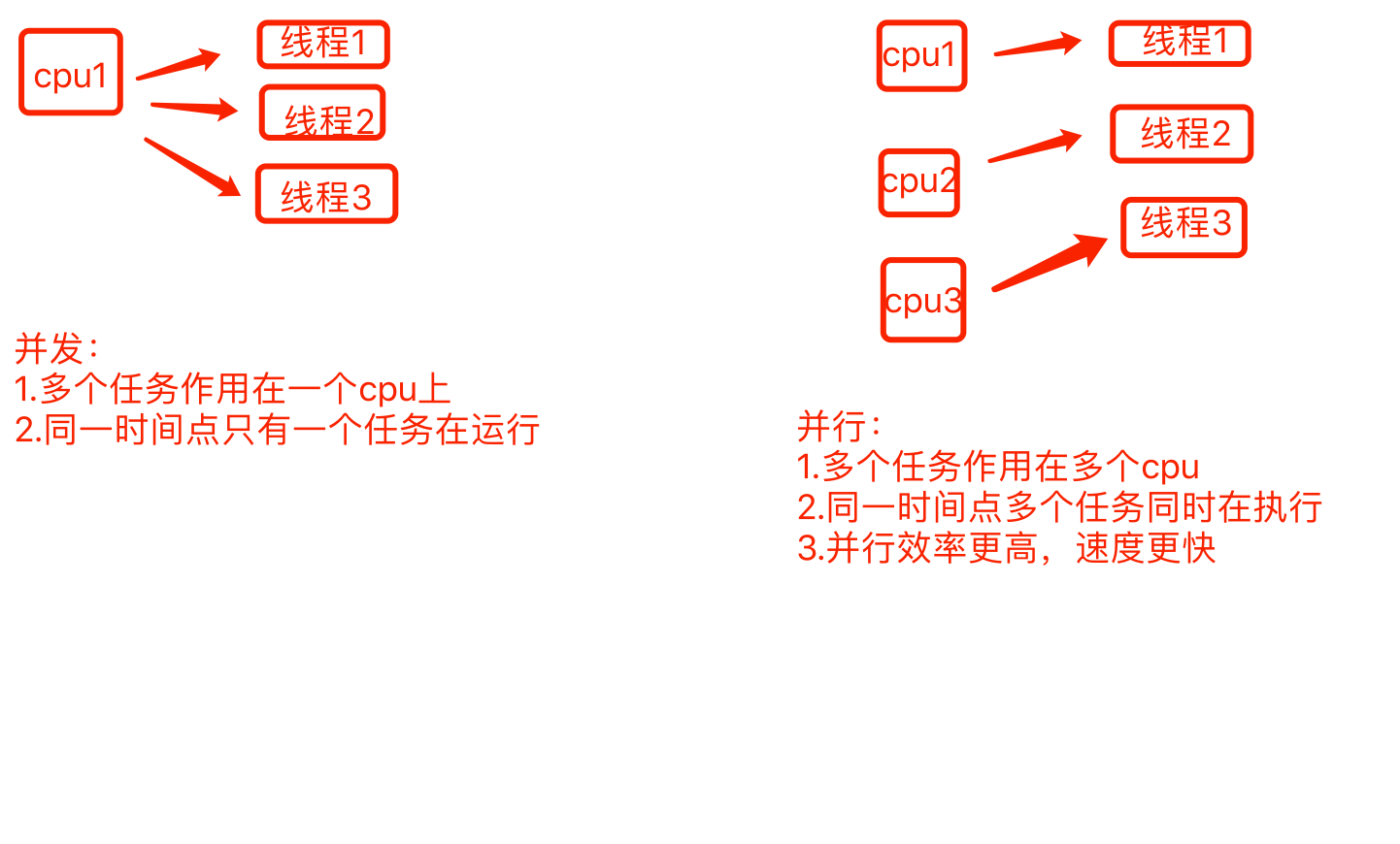 2)多线程程序在多核CPU上运行,就是并行
